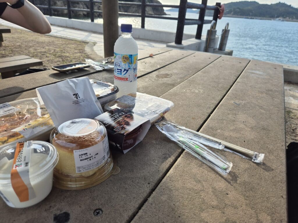 마땅히 갈 식당을 검색하지 못해서 세븐일레븐에서 편의점음식을 가득사서 바다가 보이는 벤치에서 파워 아침점심 먹방을 진행했다.