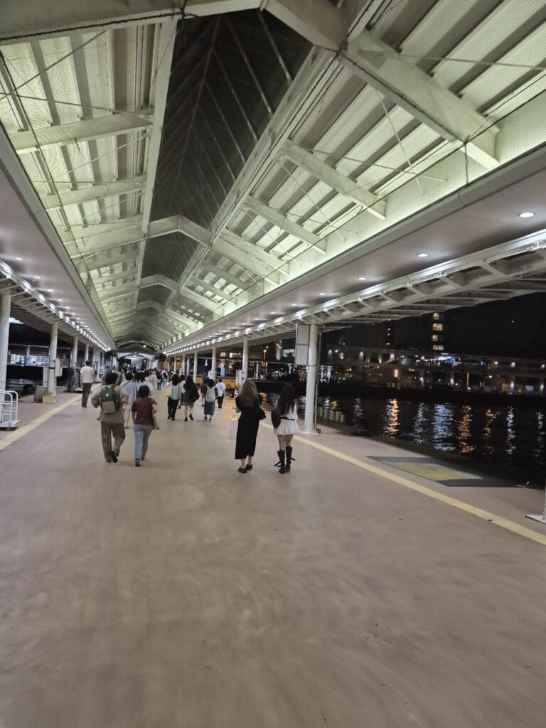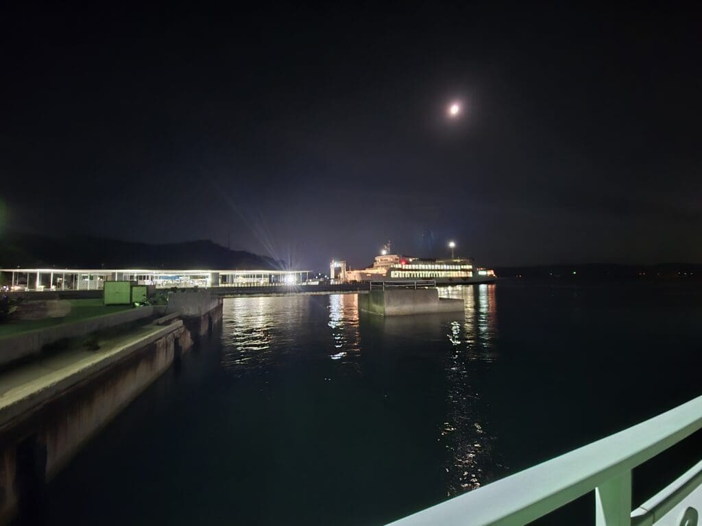 나오시마 선착장에 밤이 찾아왔다. 예술제를 준비하고 있어서, 밤까지 학생들이 퍼포먼스를 준비하고 있었다.
