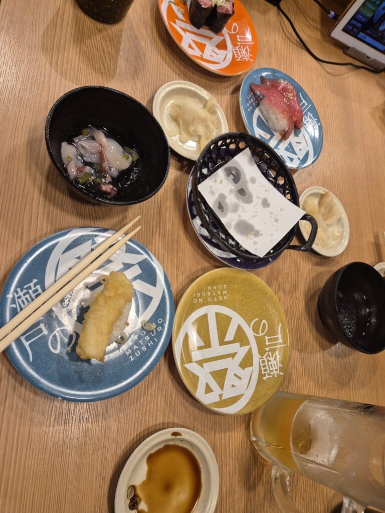 밤이 늦어서 영업하는 식당이 많지 않지만, 다카마쓰에 있는 거의 유일한 회전초밥집에 방문하기로 했다.