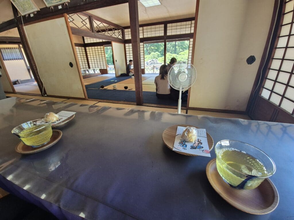 공원내부에 타다미방같은 카페에서 정원을 보면서