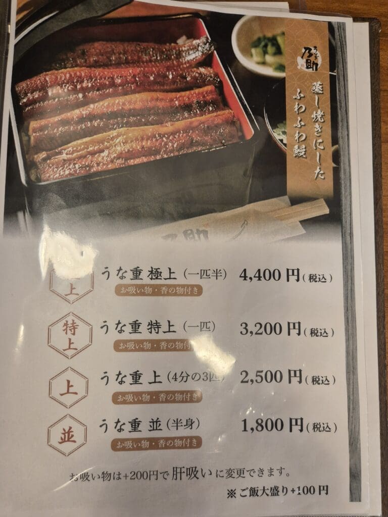 히츠마부시를 먹을까 고민하다가 , 그냥 우나기동을 먹기로 했다 3/4마리 2400엔